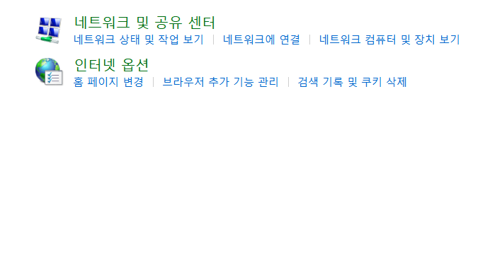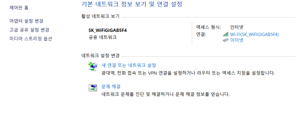그러면 이런 화면이 뜰것인데(윈도우 10 기준) 네트워크 및 인터넷을 들어간 후, 네트워크 및 공유센터를 클릭한다.